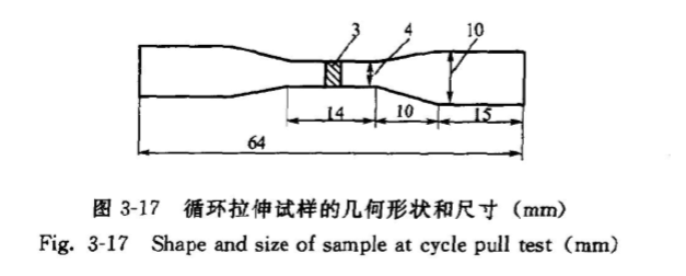 眾所周知,在較低的溫度或應(yīng)應(yīng)下促進(jìn)陶瓷超塑性變形的方法之一就是細(xì)化晶粒尺寸,而納米周瓷則是利用減小晶粒尺寸后,無序晶界的體積分?jǐn)?shù)會(huì)大幅度提高,有可能室溫脆性陶瓷將成為延性的。本研究的目的就是為了探求納米陶瓷室溫循環(huán)變形的可能行為和機(jī)理,通過熱壓方法( Fujidempace400kN熱壓爐)首先制制得得4mmX64mm×64mm的塊狀材料,然后加工成具有14mm標(biāo)距長度的樣品,它們的幾何形狀和尺寸見圖3-17。