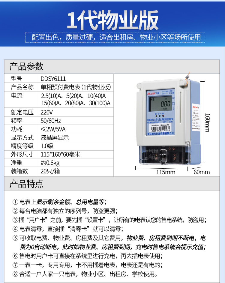 (2)預付費電表的功能:經典款電表是上顯示剩余電量、總用電量等,1代物業版電表上顯示剩余于金額、總用電量等,2代物業版電表上顯示剩余金額、總用電量、物業、房租剩余天數、北京時間等具體功能如下。