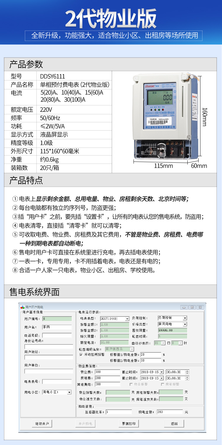 (1)預付費電能表歷經多年發展,由開始的只能收取電費,發展到可以代收物業費和房租費的功能,后續系統升級為除控制用戶用電外,還可控制用戶的物業費或房租費(物業費或房租費到期電表自行斷電,補交物業費或房租費后,預付費電表方可來電),本章通過圖片形式講解用戶關于預付費電度表的功能、操作系統、接線方式等問題。